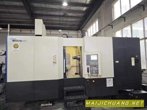刚到货,高配原装韩国威亚双工位卧式加工中心,型号HS5000i、三轴行程850x700x750工作台一度一分,BBT40电主轴12000转、60把链式刀库,带对刀仪、带中心出水、发那科32i高配系统、设备安装少用,2018年,
