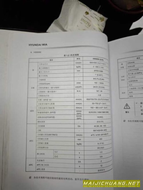 :韩国威亚双工位卧式加工中心型号HS5000i、三轴行程850.