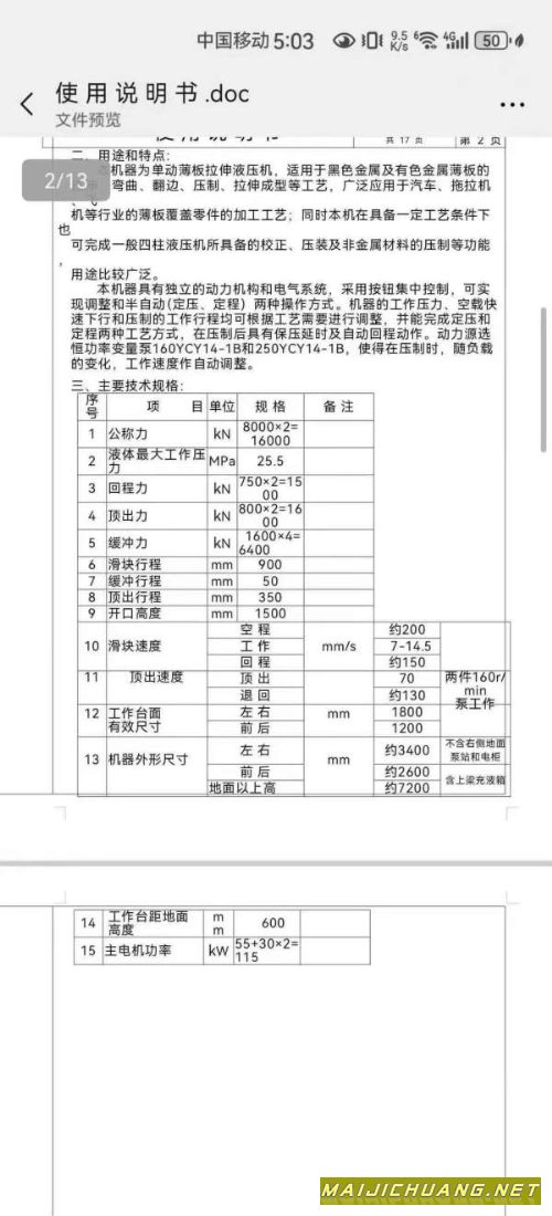 南通锻压2000吨,台面2米3米,开口3米.